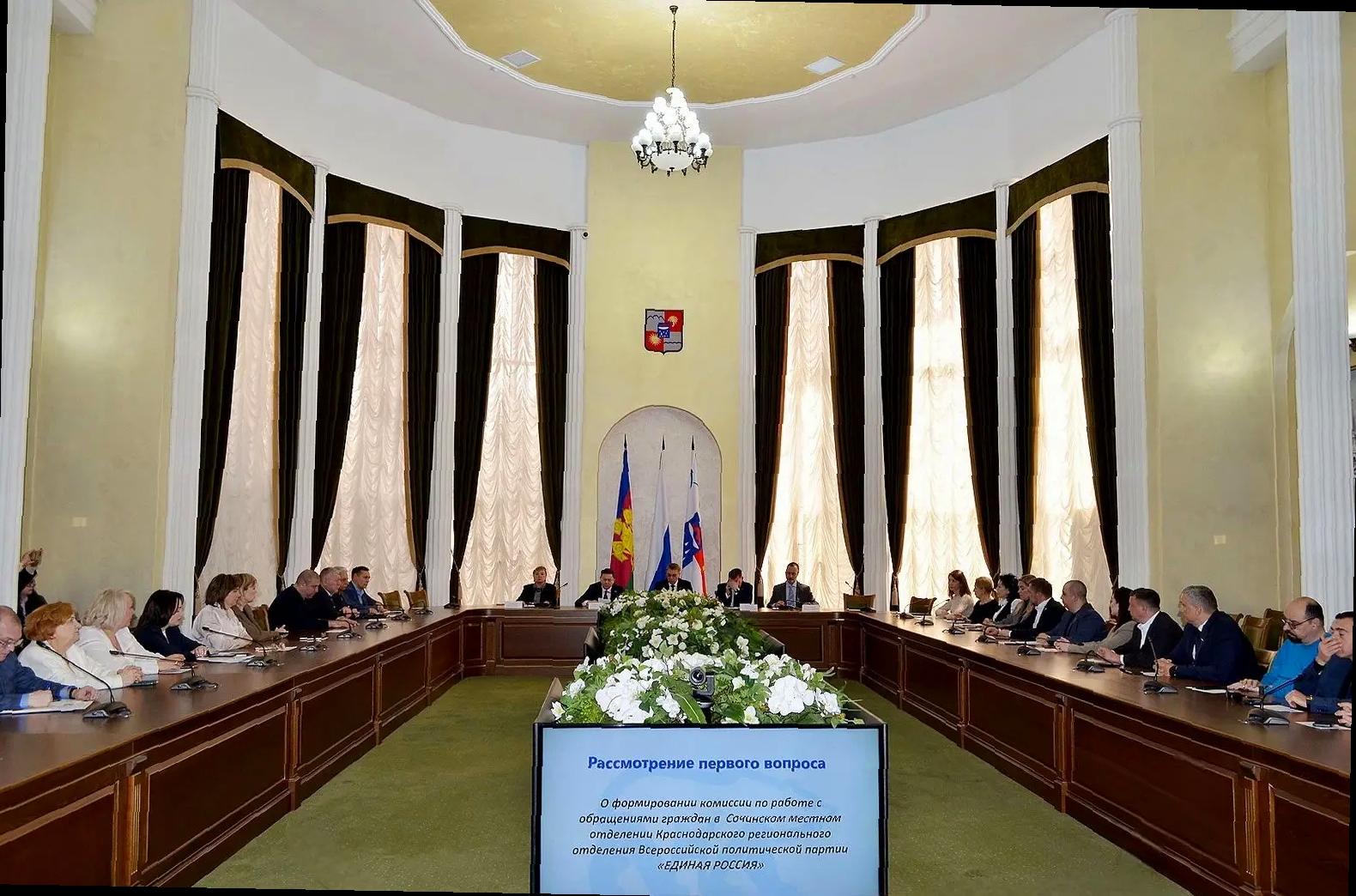 На встрече присутствовали представители президиума, включая председателя Городского Собрания Сочи Виктора Филонова, заместителя главы курорта Александра Митникова и депутата Государственной Думы РФ Сергея Кривоносова.